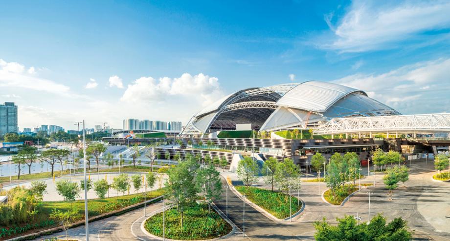 Situé sur un superbe site riverain de 35 hectares, le Sports Hub, conçu par dp architects, dispose d’un stade magnifique, couronné par un dôme en forme de demi-ballon rond.
